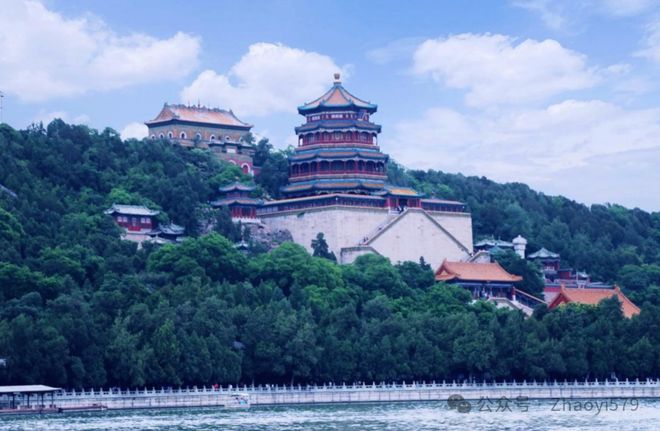 仰借是利用高、低处景物的自然高差形成的景观层次和人们抬头仰望的视觉特性,使高处景物,甚至白云飞鸟、明月繁星成为低处空间景色的借景。例如,杭州西湖借孤山的动势、南京玄武湖借钟山的天然风光、北京颐和园昆明湖借玉泉山建筑群之壮观景色等,从而获得了“嘉则收之”的借景构图效果。仰借视觉较疲劳,观赏点一般宜有休息设施。